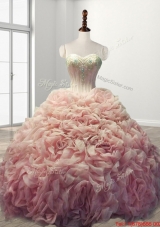 - Modern Beaded and Ruffled Pink Quinceanera Dress in Organza