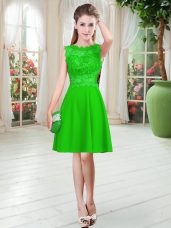 - Empire Dress for Prom Green Scalloped Satin Sleeveless Knee Length Zipper